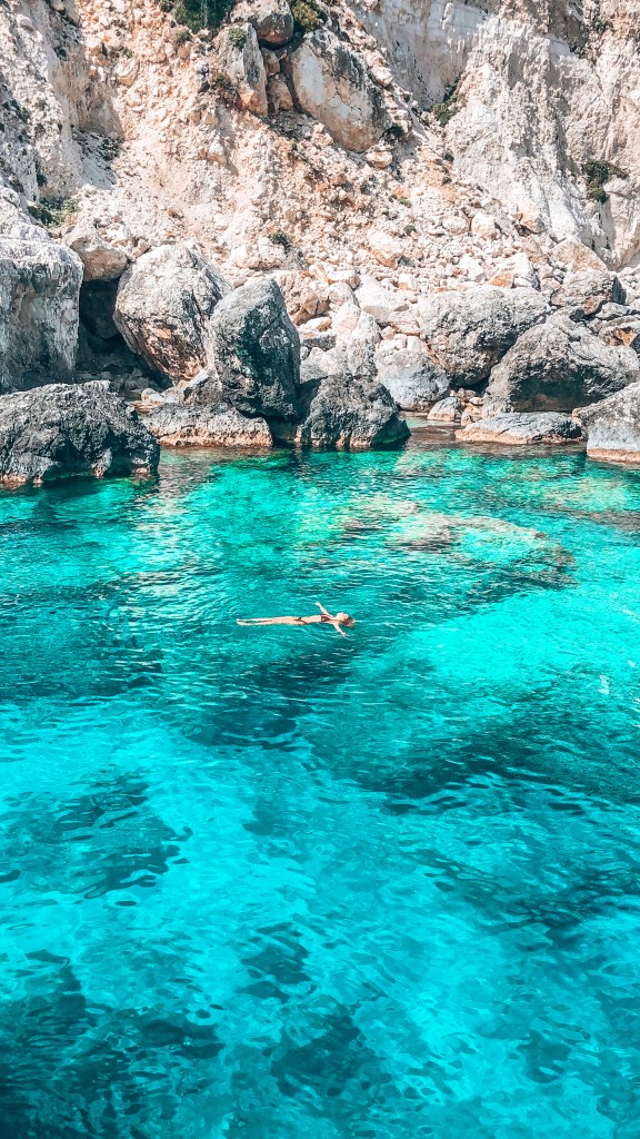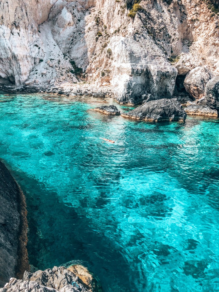 Den Tag ausklingen lassen, wollten wir an einem Strand und haben angefangen etwas zu recherchieren. Unter „schönste Strände Zakynthos“ haben wir einige gefunden und sind auch jeweils dorthin gefahren. Wirklich gefallen hat uns dann aber leider keiner. Schon fast hoffnungslos, einen schönen Strand zu finden, bin ich noch etwas intensiver in meine Suche eingestiegen und habe am Ende einen „Strand“ (es war eher eine natürliche Badestelle) gefunden, die zunächst nicht so leicht zu finden war, aber bis heute der schönste Ort ist, an dem ich je baden war.